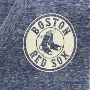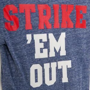 Victoria's Secret PINK Boston Red Sox Baseball Heather Blue T-Shirt with Red Sox Logo Graphic & Block Lettering on the Back That Says STRIKE 'EM OUT.