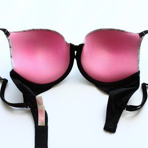 Lovely (as always) PINK "Wear Everywhere" heather gray and black push-up bra! Underwire with adjustable straps. Inside is padded in pink! Tag size 32D.
