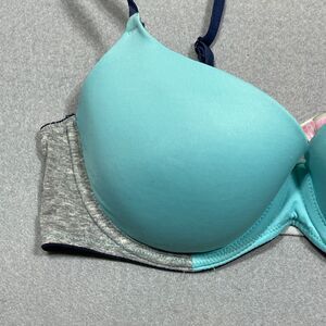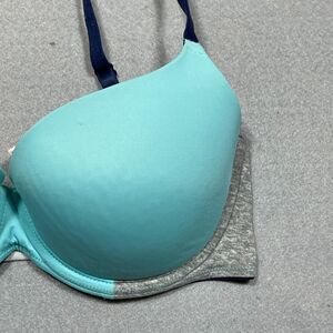 PINK Victorias Secret Bra Womens 32D Blue Turquise Heathered Gray Contrast