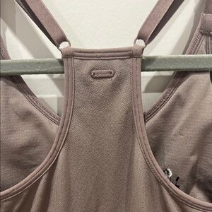 This brown jumpsuit by PINK Victoria's Secret showcases a sleek, fitted silhouette with full-length legs, crafted from a stretchy, performance fabric. The cross-back straps enhance its minimalist design, making it ideal for both casual and active settings.