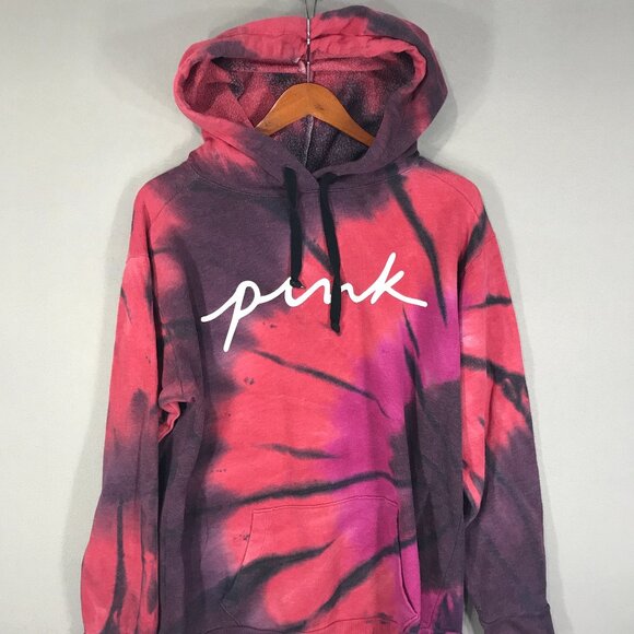 PINK Victoria's Secret Campus Hoodie Women's Large Pink Magenta Tie Dye Pullover