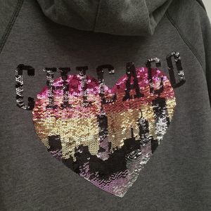 PINK Victoria's Secret Chicago Destination Skyline Bling Hoodie Size Small