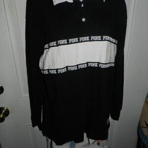 PINK Victoria's Secret Collared Long Sleeve Polo Shirt Women's M 🆕⌚📦🏃💨🚚