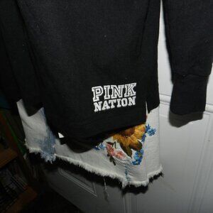 VICTORIAS SECRET PINK NATION Long Sleeve Rugby Tee Polo Shirt Black-White