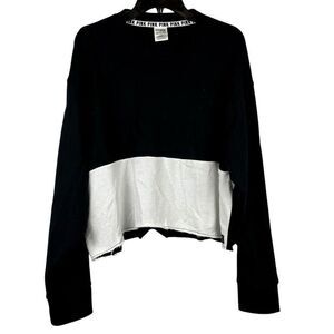 PINK Victoria’s Secret Color Block Cropped Sweatshirt Snap Sleeves Large