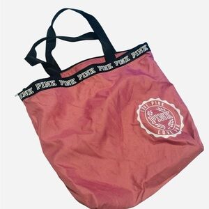 NWOT pink tote bag by PINK Victoria's Secret. Perfect for everyday use with durable handles and a trendy design. Stylish Pink tote bag with black straps by Victoria’s Secret. Pre loved!
