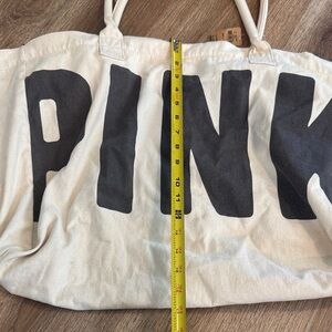 Chic tote with bold PINK logo. Ideal for daily essentials.
