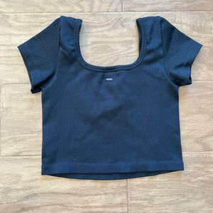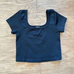 PINK Victoria's Secret Crop Top Size XS Black Seamless Rib Square Neck
