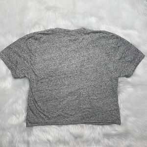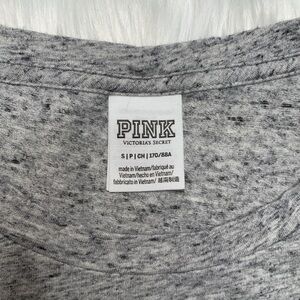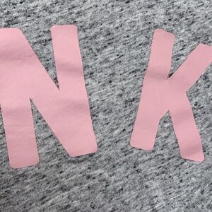PINK cropped tee. 100% cotton grey heather with pale pink screenprint logo. Womens size Small. Great used condition.