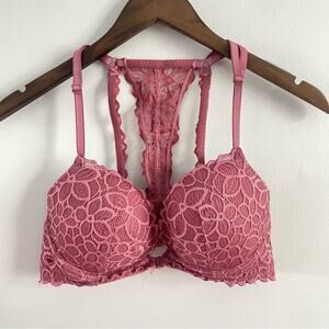 PINK Victoria’s Secret | Date Racerback Lace Push-Up Bra Pink Mauve Purple Front