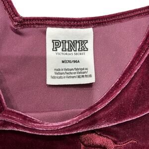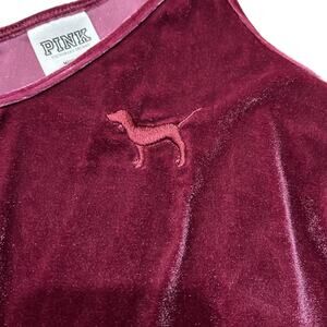 PINK Victoria’s Secret Dog Logo Burgundy Velour Swing Crop Top Size M