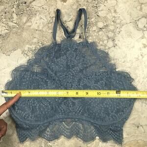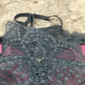 PINK Victoria’s Secret Eyelash Lace High-Neck Racerback Push Up Blue Bralette Size Medium