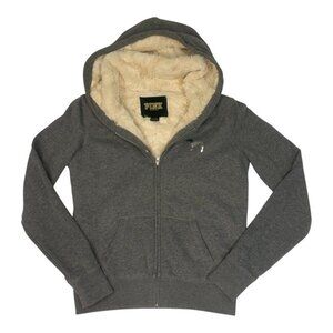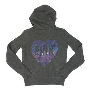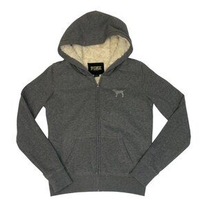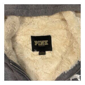 Victoria's Secret Pink Faux Fur Full Zip Hoodie, RARE, Small, Grey with a Blinged out Heart on the back of the jacket. The Faux fur Sherpa lining on the inside of the jacket is cream. EUC! Rare & hard to find its a Limited Edition! Super soft on the inside & out and extremely warm. Full front zipper with a pink dog on the front of the chest with Two front pockets. The hood and the inside part of the jacket covering the body are lined with super soft warm faux fur (But not in the arms). The color of the Jacket is Grey and the inside is Faux Fur in cream. It's a size Small. Gently Used and is in Great condition!