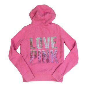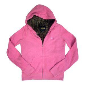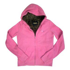 Victoria's Secret Faux Fur Lined Hoodie w/ Love Pink in Sequins on the back! Rare & hard to find its a Limited Edition! Super soft on the inside & out and extremely warm. Full front zipper with a pink dog on the front of the chest with Two front pockets. The hood and the inside part of the jacket covering the body are lined with super soft warm faux fur (But not in the arms). The color of the Jacket is Pink and the inside Faux Fur is Brown and it's a size Small. Gently Used and is in Great condition!