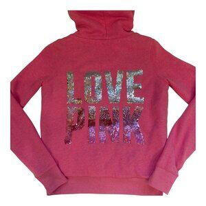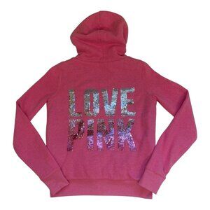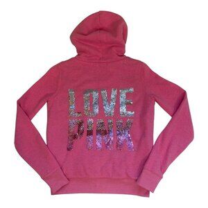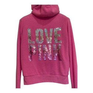 Victoria's Secret Faux Fur Lined Hoodie w/ Love Pink in Sequins on the back! Rare & hard to find its a Limited Edition! Super soft on the inside & out and extremely warm. Full front zipper with a pink dog on the front of the chest with Two front pockets. The hood and the inside part of the jacket covering the body are lined with super soft warm faux fur (But not in the arms). The color of the Jacket is Pink and the inside Faux Fur is Brown and it's a size Small. Gently Used and is in Great condition!