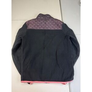 Keywords: PINK Victoria's Secret, fleece jacket, full zip jacket, black fleece, pink trim, logo print, casual jacket, warm jacket, layering piece, athleisure, streetwear, cozy, small, S