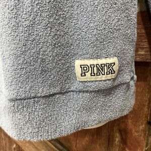 This sweatshirt is in excellent condition with very minimal wear. It has an a embroidered PINK logo on the bottom and the silver dog over the chest. It is 75% cotton and 25% polyester. This is Heather blue and very comfortable. It is an extra small but seems like it has a looser fit, I would imagine it would fit a small as well.