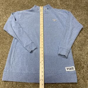 Victorias Secret PINK Womens Heather Blue Shirt Sweatshirt Mock Neck Silver Dog.