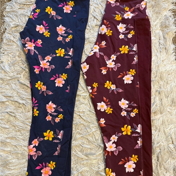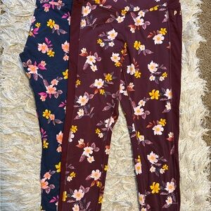 Burgundy leggings with vibrant floral design. Features pink, yellow, and white flowers. Bundle deal worn them a few times but outgrew them. Still in great shape