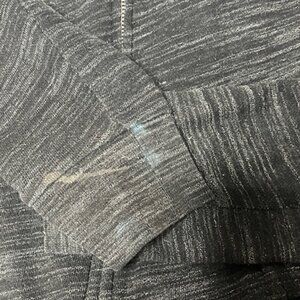 Condition: Good, Stains on sleeve end, faux leather stripes on sleeves crackling, loose stitching on front zipper area (Please see pics)