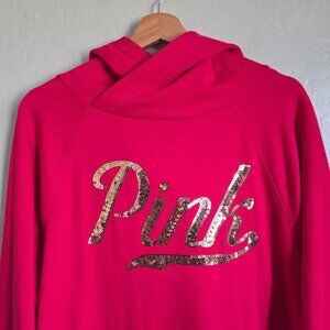 NEW PINK Victoria's Secret Gold Sequins Bling Oversized Sweater Hoodie Pullover Red Size Women's Small