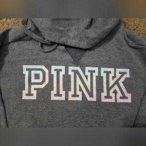 PINK Victoria's Secret Gray Hoodie with Multicolor Logo