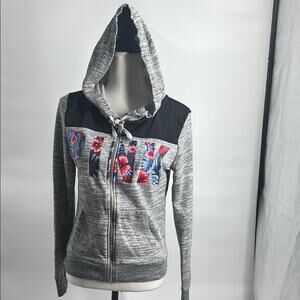 PINK Victoria's Secret Gray Long Sleeve Hooded Zippered Sweatshirt S