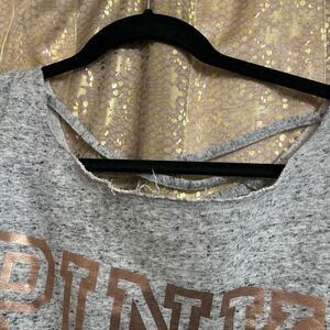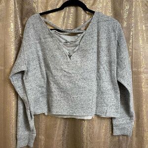 PINK Victorias Secret Gray Rose Gold Logo Criss Cross Back Cropped Sweater, Small