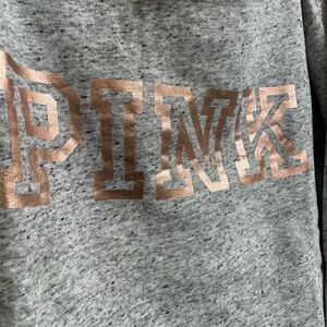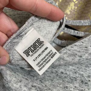 PINK Victorias Secret Gray Rose Gold Logo Criss Cross Back Cropped Sweater, Smal