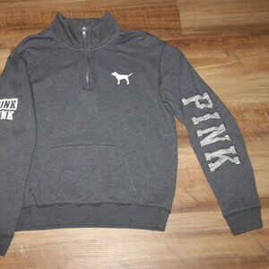 PINK * Victoria's Secret Gray Size SMALL Half Zip Mock Neck Sweatshirt