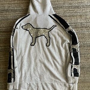 PINK Victoria's Secret Gray Sweater with Black and White Accents