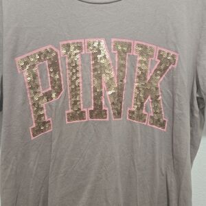 PINK Victoria's Secret Gray Tee with Sequin Logo