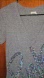 Stylish gray tee with sparkling silver sequin logo. Short sleeves. Perfect for casual wear.