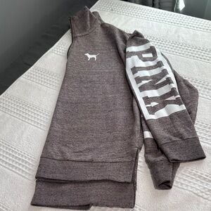 PINK Victoria's Secret Gray Zip Up Sweater with Embroidered Logo