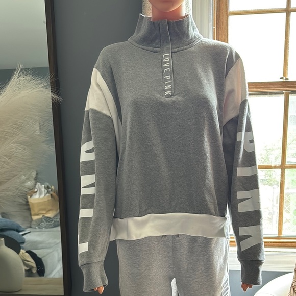 PINK Victoria's Secret Gray and White Cowl Neck Sweater
