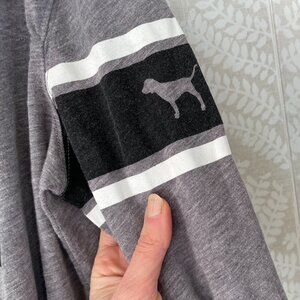 PINK Victoria's Secret Gray/Black Varsity Stripe Logo Long Sleeve V-Neck T-Shirt