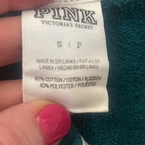Get ready to cozy up in style with this PINK Victoria's Secret 1/4 zip pullover! The vibrant green teal color is perfect for adding a pop of color to your wardrobe.