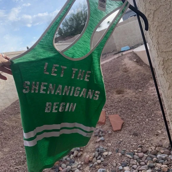 PINK Victoria's Secret Green and White Racerback Tank st patty