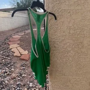 PINK Victoria's Secret racerback tank in bright green with white trim. Soft knit fabric. Sporty casual style. Easy layering piece.
