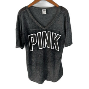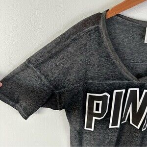 PINK Victoria's Secret Grey Burnout V-Neck Tee Size Small