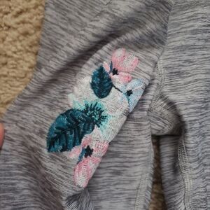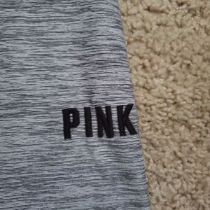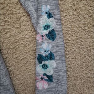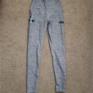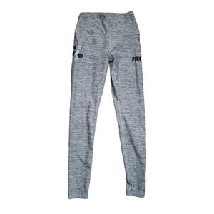 Pink Victoria's Secret Heather gray leggings with floral embroidery on the side at the top and bottom side