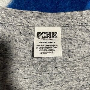 Heather gray tee with bold PINK logo in blue. Soft and casual for everyday wear.
