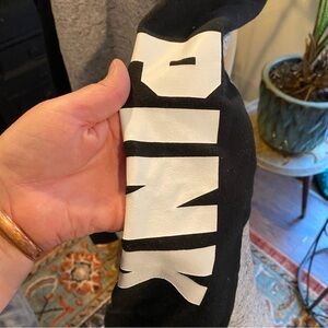 PINK Victoria’s Secret Heather gray black logo boyfriend sweatpants with pockets
