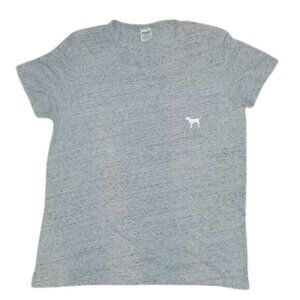 PINK by Victoria's Secret gray t-shirt with white dog logo on front pocket & oversized dog logo on the back of shirt. Great condition. NO TRADES.