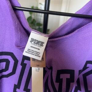 Never worn! Lavender top with bold PINK logo. Soft and stylish.