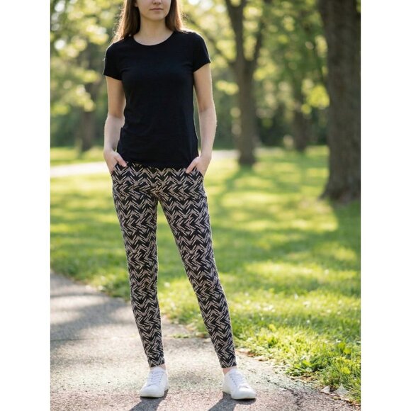 PINK Victoria's Secret Leggings Size S Black White Tribal Geometric Sequin Logo
