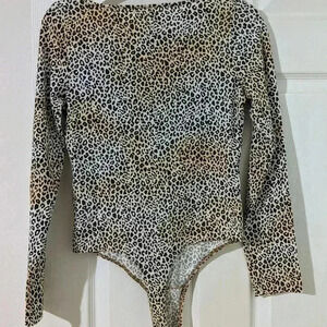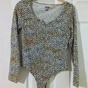 PINK Victoria's Secret Leopard Print Long Sleeve V-Neck Bodysuit NWT