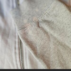 Small stains pictured. Chic light gray . Soft fabric with zip-up front. Ideal for casual wear. (#31)