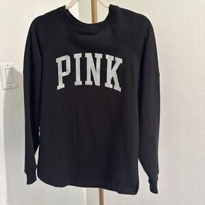 PINK Victoria's Secret Long Sleeve Black Sweater W/Sparkly Logo Womens Small