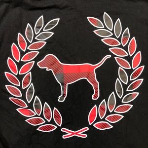 PINK Victoria's Secret Long Sleeve T-Shirt XS Black Red Dog Graphic Front Pocket